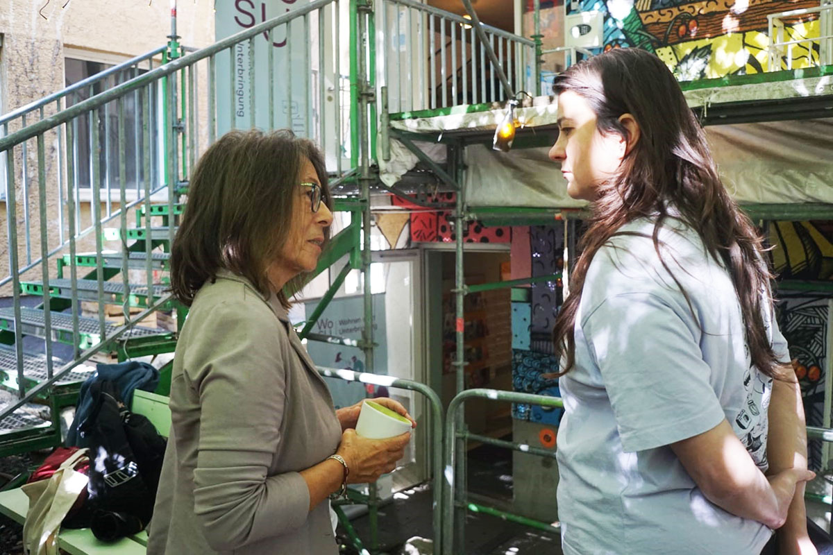 Jahr für Jahr stellen sie einen festen Prozentsatz ihrer Wohnungen gezielt für sozial benachteiligte Menschen zur Verfügung, mit und ohne Migrationshintergrund. Das Besondere: Xenion und InVia bieten eine mietbegleitende Betreuung an. Sie klären Fragen rund um Miete, gemeinsames Leben und Nachbarschaft, unterstützen die Bewohner:innen dabei, sich in die Genossenschaft einzubringen – und kümmern sich um die Finanzierung der Genossenschaftsanteile.